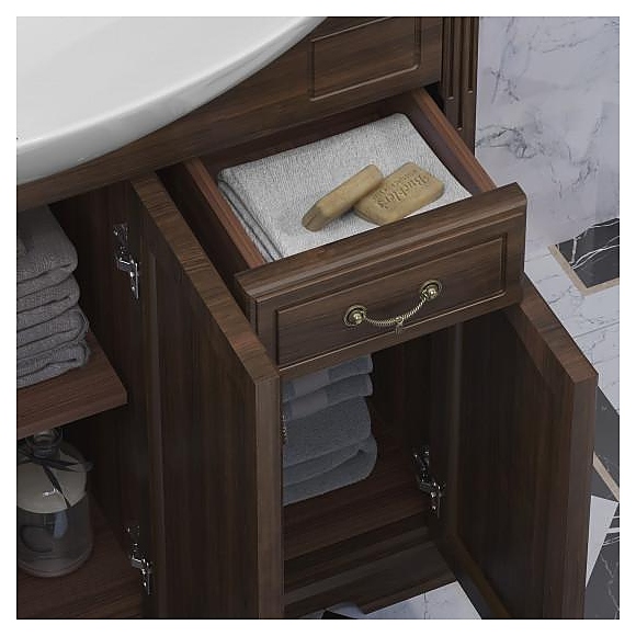 Тумба напольная под раковину OPADIRIS Риспекто 95 00-00002565 выполнена в классическом стиле. Модель оснащена 3 распашными фасад-дверцами и 2 небольшими ящиками в верхней части изделия. Напольная конструкция обеспечивает легкий монтаж и не требует специального ремонта в помещении. Благодаря изящной отделке и классическим формам мебель станет украшением любой ванной комнаты. Корпус изделия выполнен из массива бука, материал боковых сторон - массив буква и филенка МДФ. Тумба приобретается только в комплекте с раковиной Kirovit Монро 95 4630055550531. Раковина со смесителем в комплект поставки не входят и приобретаются отдельно. Тумба является частью гарнитура для ванной комнаты Риспекто 95, орех антикварный. Дополнительные характеристики:
