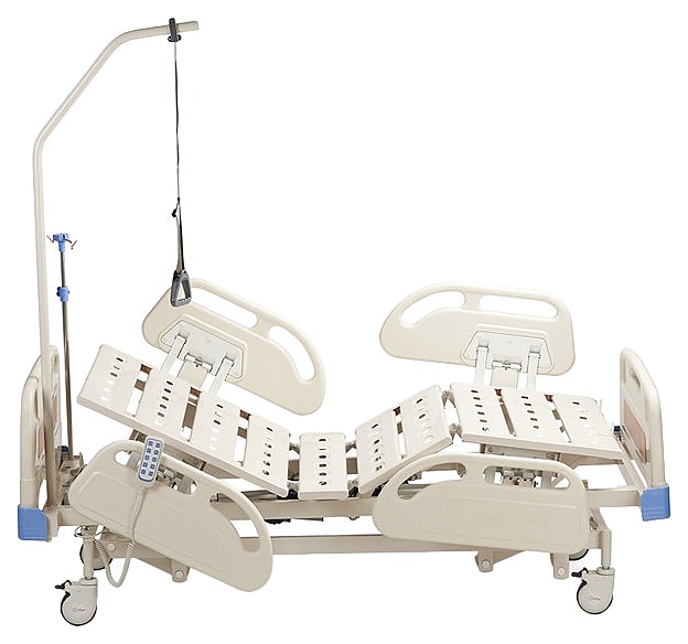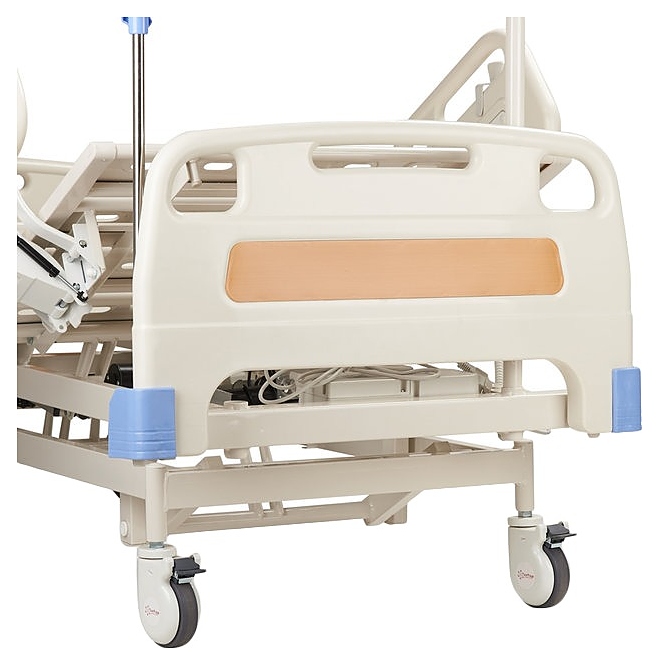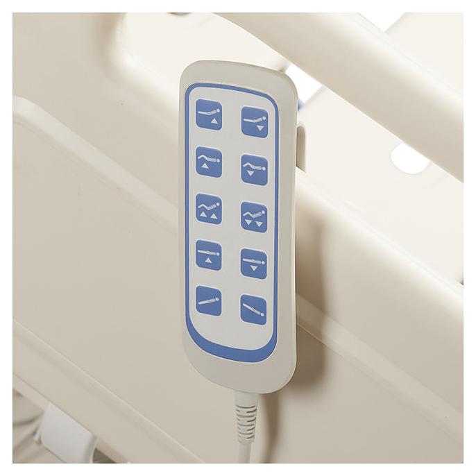Электрическая медицинская кровать Армед SAE-300 используется в госпиталях, диагностических и реабилитационных центрах, клиниках, санаториях и других медицинских и лечебно-профилактических учреждениях, а также в домашних условиях для комфортного размещения пациента. Модель оснащена анатомическим ложементом с 4 секциями, электроприводами, 4 боковыми ограждениями, 2 съемными торцевыми спинками, устойчивыми опорами на колесах, блоком управления с аккумуляторной батареей и кабелем питания. Каркас и секции ложемента изготовлены из стального профиля с антикоррозийным покрытием эпоксидной эмалью, боковые ограждения и спинки – из АБС-пластика, спинки с декоративными вставками под дерево. В комплект поставки входят инфузионная стойка, штанга для подтягивания, пульт дистанционного управления и набор крепежа. Особенности: