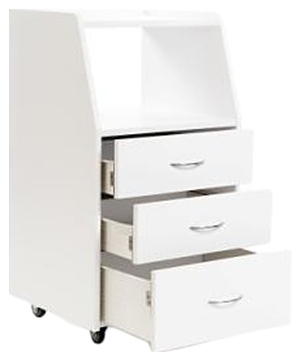 Косметологическая тележка Имидж Мастер БЬЮТИ мини предназначена для хранения аксессуаров, оборудования и расходных материалов в парикмахерских, барбершопах, маникюрных студиях, массажных кабинетах, салонах красоты и косметологических центрах. Модель оснащена 2 просторными полками и 3 выдвижными ящиками на устойчивом каркасе и 4 колесами. Каркас, полки и ящики выполнены из качественной ламинированной древесно-стружечной плиты с облицовкой влагостойкой пленкой, колеса – из прочного пластика. В комплект поставки входит набор крепежа. Особенности: