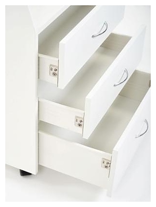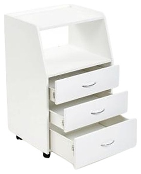 Косметологическая тележка Имидж Мастер БЬЮТИ предназначена для хранения аксессуаров, оборудования и расходных материалов в парикмахерских, барбершопах, маникюрных студиях, массажных кабинетах, салонах красоты и косметологических центрах. Модель оснащена 2 просторными полками и 3 выдвижными ящиками на устойчивом каркасе и 4 колесами. Каркас, полки и ящики выполнены из качественной ламинированной древесно-стружечной плиты с облицовкой влагостойкой пленкой, колеса – из прочного пластика. В комплект поставки входит набор крепежа. Особенности: