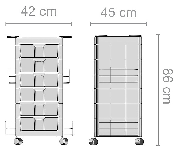 Парикмахерская тележка Ceriotti 7247 Taxi-S предназначена для использования в салонах красоты, парикмахерских и тату салонах для хранения рабочих инструментов, приборов и расходных материалов. Модель оснащена выдвижными ящиками, бесшумными колесами для комфортного перемещения и съемными боковыми полками, предназначеными для хранения инструментов. Изделие выполнено из пластика. Особенности: