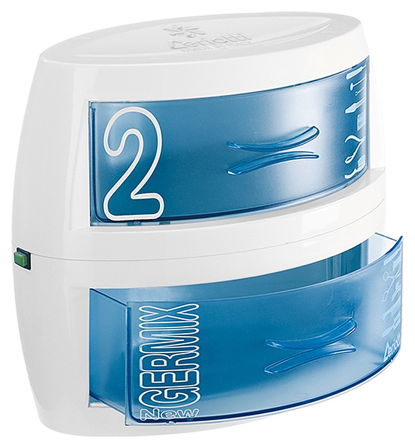 Ультрафиолетовый двухкамерный стерилизатор Ceriotti 3104 New Germix 2 предназначен для дезинфекции и стерильного хранения уже обработанных инструментов и прочих принадлежностей из металла, дерева и пластмассы в салонах красоты, косметологических центрах, парикмахерских и маникюрных студиях. Модель оснащена ультрафиолетовой лампой Philips 8W, вместительными выдвижными ящиками и кабелем питания. Корпус выполнен из прочного пластика. Особенности: