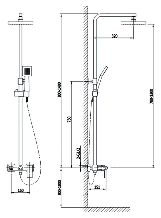 Душевая стойка TIMO Briana SX-7130/00 с верх. душ. лейкой "Тропический дождь", хром
