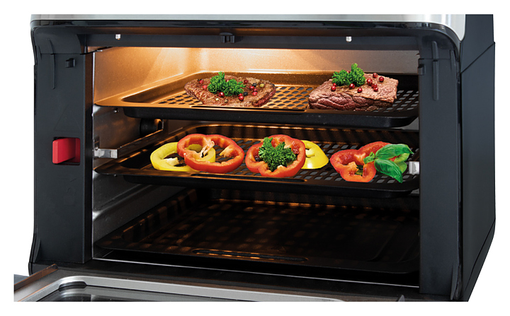 Аэрофритюрница Profi Cook PC-FR 1200 H предназначена для приготовления различных продуктов горячим воздухом без масла в частных домах, квартирах, отелях и офисах. Модель оснащена сенсорной панелью управления со светодиодным дисплеем, термостатом с плавной регулировкой, большим смотровым окном и теплоизолированной ручкой. Передняя часть корпуса и крышка выполнены из нержавеющей стали. Комплектация: