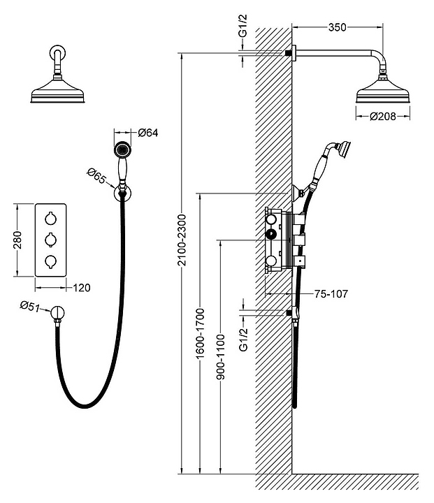 Душевой комплект TIMO Petruma SX-5169/02SM предназначен для использования в ванных помещениях. Серия выполнена в ретро стиле. Модель оснащена круглым верхним душем "Тропический дождь" и ручной лейкой с душевым шлангом, а также термостатическим картриджем, который автоматически прекращает подачу воды при отключении холодной воды, что предотвращает возникновение ожогов. Изделие выполнено из высококачественной латуни, отличающейся прочностью, долговечностью и устойчивостью к перепадам температур. В комплект поставки входят смеситель, тропический душ, штанга тропического душа с декоративным отражателем, ручная лейка, душевой шланг, декоративная насадка смесителя, держатель ручной лейки, ручка дивертора, ручка управления термостатом, ручка переключения в режим "ручной душ" и отвод из стены. Особенности: