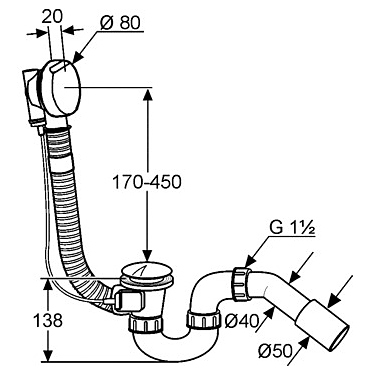 Слив-перелив KLUDI Rotexa 2130005N-00 предназначен для установки с ваннами. Модель оснащена сифоном, гибким шлангом, гибкой переливной трубой. Дополнительные характеристики: