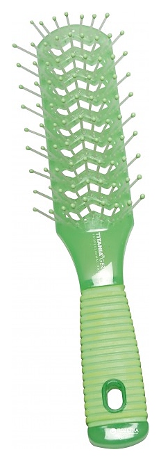 Туннельная массажная щетка Titania 1831 используется в парикмахерских, барбершопах, салонах красоты и домашних условиях для термоукладки, моделирования причесок и стрижек, а также в качестве персонального предмета ежедневного ухода за волосами всех типов. Модель оснащена узкой рабочей поверхностью с 9 рядами шпилек и удобной ручкой с отверстием для подвешивания. Корпус выполнен из прочного пластика, шпильки – из нейлона. Модель доступна в 4 альтернативных цветовых исполнениях. Минимальный заказ: 80 шт. Особенности:
