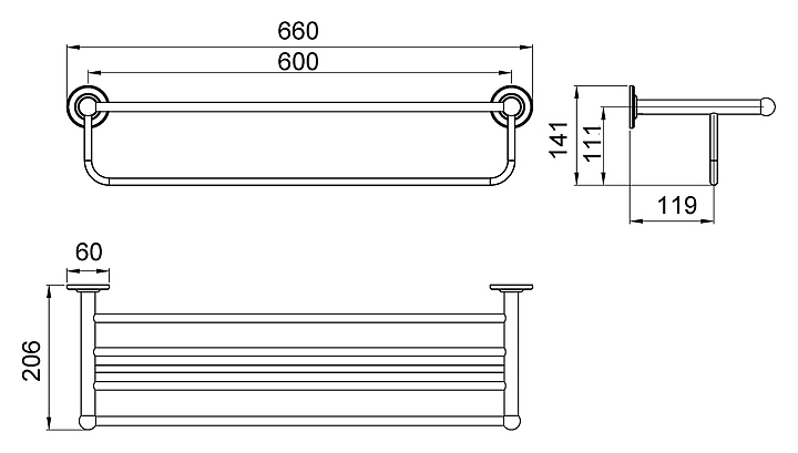Полка для полотенец с полотенцедержателем TIMO Nelson 150058/00 хром