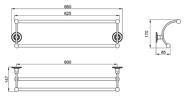 Полотенцедержатель TIMO Nelson 160056/02 используется в ванных комнатах для размещения тканных полотенец. Серия Nelson выполнена в современном стиле. Аксессуары этой коллекции идеально дополнят дизайн любой ванной комнаты. Модель оснащена 2 перекладинами, а также имеет скрытые крепления и монтируется на стену. Изделие выполнено из латуни, отличающейся прочностью, долговечностью и устойчивостью к перепадам температур. В комплект поставки входит набор креплений. Дополнительные характеристики: