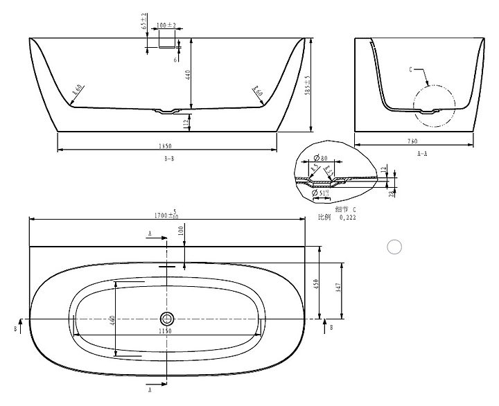 Ванна Art&Max Milan AM-MIL-1700-800 170х80 см, акрил