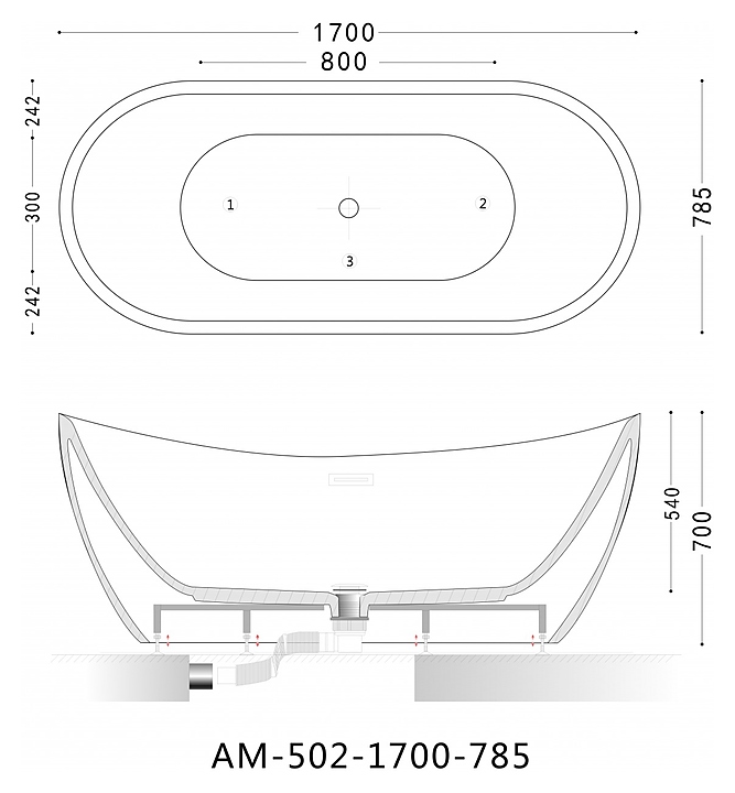 Ванна Art&Max AM-502-1700-785 170x78,5 см, акрил