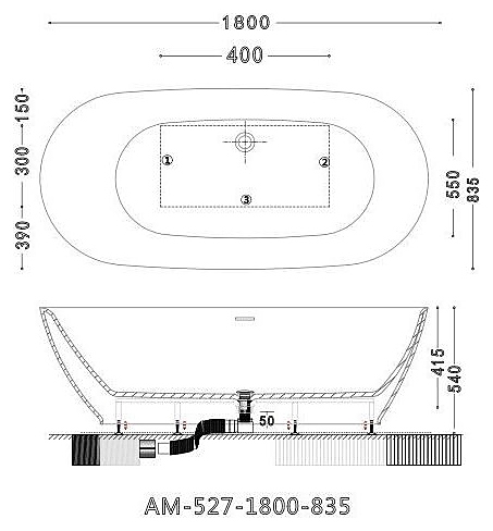 Ванна Art&Max AM-527-1800-835 180x83,5 см, акрил