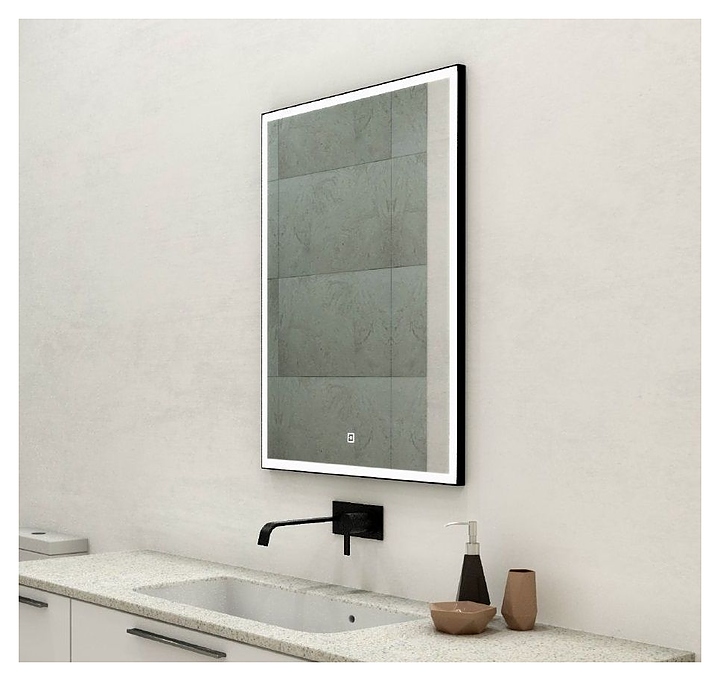 Зеркало Art&Max Arezzo AM-Are-600-800-DS-FC-H-Nero 60х80 см, с подсветкой и функцией антизапотевания