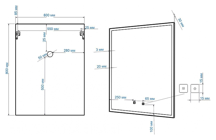Зеркало Art&Max Arezzo AM-Are-600-800-DS-FC-H-Nero выполнено в современном стиле и отлично дополнит интерьер любой ванной комнаты. Благодаря подвесной конструкции модель не занимает много места, что позволяет экономить пространство в небольшой ванной комнате. Модель оснащена встроенной светодиодной LED подсветкой с диммером и функцией антизапотевания, также профилем из полированного аллюминия по периметру зеркала. В комплект поставки входит крепеж. Особенности: