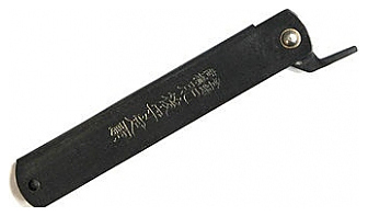Складной нож Higonokami HKC-100BL предназначен для очистки и нарезания овощей, корнеплодов, шинкования продуктов на природе или в домашнем обиходе. Модель оснащена рычажком, выступающим над рукояткой, который в процессе использования придерживается пальцем. Лезвие и клинок выполнены из высокоуглеродистой и устойчивой к коррозии стали. Особенности: