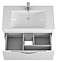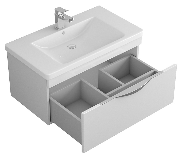 Гарнитур OWL Sjel 80 выполнен в современном стиле. Комплект состоит из тумбы под раковину Sjel 80 OW25.02.00, раковины Soft OWLB20-13080, зеркального шкафа Sjel 80 OW25.20.00, полупенала Sjel 30R OW25.06.00, пенала Sjel 30 OW25.05.00 и комплект опор OW99.00.01. Тумба оснащена ящиком полного выдвижения с системой разделения пространства, зеркальный шкаф - LED-подсветкой, раковина имеет слив-перелив и отверстие для смесителя по центру, пенал - распашные фасад-дверцы со стеклянными полками внутри. Благодаря подвесной конструкции изделие не занимает много места и обеспечивает легкую уборку в ванной комнате. Корпус мебели выполнен из ЛДСП, фасады - высококачественной МДФ белого цвета, торцевые ручки - полированный алюминий, раковина - из санфарфора, который обладает повышенной прочностью и устойчивостью к негативным внешним факторам, а так же способен долгое время сохранять идеальную белизну. Особенности: