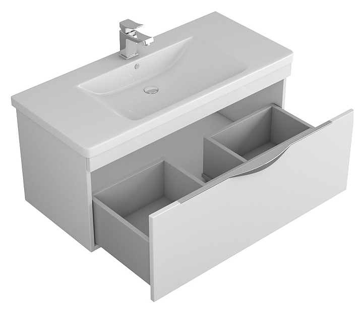Гарнитур OWL Sjel 100 выполнен в современном стиле. Комплект состоит из тумбы под раковину Sjel 100 OW25.03.00, раковины Soft OWLB20-13100, зеркального шкафа Sjel 100 OW25.30.00, полупенала Sjel 30R OW25.06.00, пенала Sjel 30 OW25.05.00 и комплект опор OW99.00.01. Тумба оснащена ящиком полного выдвижения с системой разделения пространства, зеркальный шкаф - LED-подсветкой, раковина имеет слив-перелив и отверстие для смесителя по центру, пенал - распашные фасад-дверцы со стеклянными полками внутри. Благодаря подвесной конструкции изделие не занимает много места и обеспечивает легкую уборку в ванной комнате. Корпус мебели выполнен из ЛДСП, фасады - высококачественной МДФ белого цвета, торцевые ручки - полированный алюминий, раковина - из санфарфора, который обладает повышенной прочностью и устойчивостью к негативным внешним факторам, а так же способен долгое время сохранять идеальную белизну. Особенности: