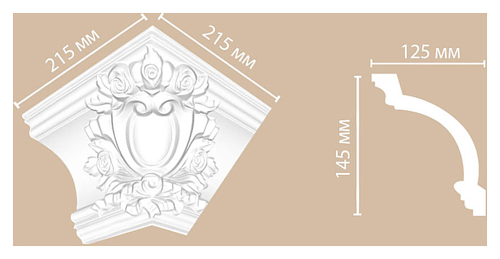 Угол внешний к плинтусу потолочному Decomaster DP 217 E (145x125x215 мм)