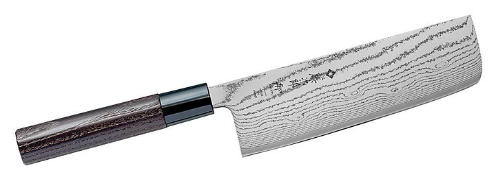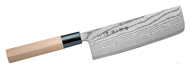 Нож накири Tojiro FD-598 предназначен для шинковки всех видов корнеплодов и фруктов в ресторанах, кафе. Лезвие выполнено из высококачественной высокоуглеродистой шестидесятитрёхслойной стали, рукоятка - из древесины. Дополнительные характеристики: