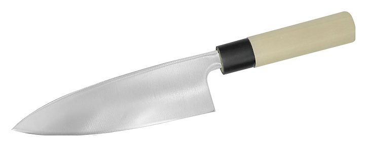 Нож деба Tojiro F-1055 предназначен для разделки рыбы в ресторанах, кафе. Клинок ножа широкий, с ассиметричной заточкой под правшу. Модель оснащена округлым обушком для удобства нажима другой рукой при работе с крупной рыбой. Лезвие выполнено из высококачественной нержавеющей однослойной стали Mo-V, устойчивой к коррозии, рукоятка - из магнолии. Особенности: