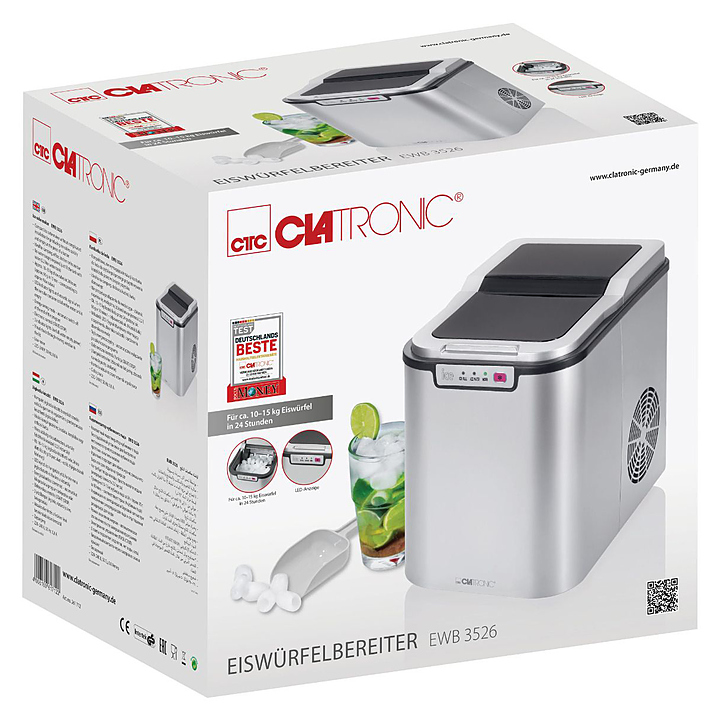 Льдогенератор заливного типа Clatronic EWB 3526 предназначен для получения пальчикового льда, который используется для приготовления разнообразных коктейлей, алкогольных и прохладительных напитков в частных домах, квартирах, отелях и офисах. Модель оснащена крышкой со смотровым окном и панелью управления с 3 световыми индикаторами. Корпус выполнен из пластика. Особенности: