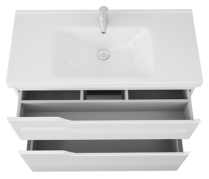 Гарнитур OWL Hella stor 100 выполнен в современном стиле. Комплект состоит из тумбы под раковину Hella stor 100 OW24.16.00, раковины Soft OWLB20-13100, полупенала Hella 35 OW24.05.00, пенала Hella 35 OW25.05.00 и комплект опор OW99.00.01. Тумба оснащена 2 ящиками полного выдвижения с системой разделения пространства, раковина имеет слив-перелив и отверстие для смесителя по центру, пенал - распашные фасад-дверцы со стеклянными полками внутри. Благодаря подвесной конструкции изделие не занимает много места и обеспечивает легкую уборку в ванной комнате. Корпус мебели выполнен из ЛДСП, фасады - высококачественной МДФ белого цвета, раковина - из санфарфора, который обладает повышенной прочностью и устойчивостью к негативным внешним факторам, а так же способен долгое время сохранять идеальную белизну. Особенности: