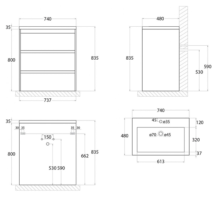 Тумба под раковину Art&Max Family-750-3C-PIA-PE выполнена в современном стиле и прекрасно впишется в интерьер любой ванной комнаты. Напольная конструкция обеспечивает легкий монтаж и не требует специального ремонта в помещении. Модель оснащена тремя выдвижными ящиками с доводчиками. Фасад изделия выполнен из ЛДСП. Тумба может использоваться вместе с раковиной AM-LAV-750-MR-A. Раковина и смеситель в комплект поставки не входят и приобретаются отдельно. Особенности: