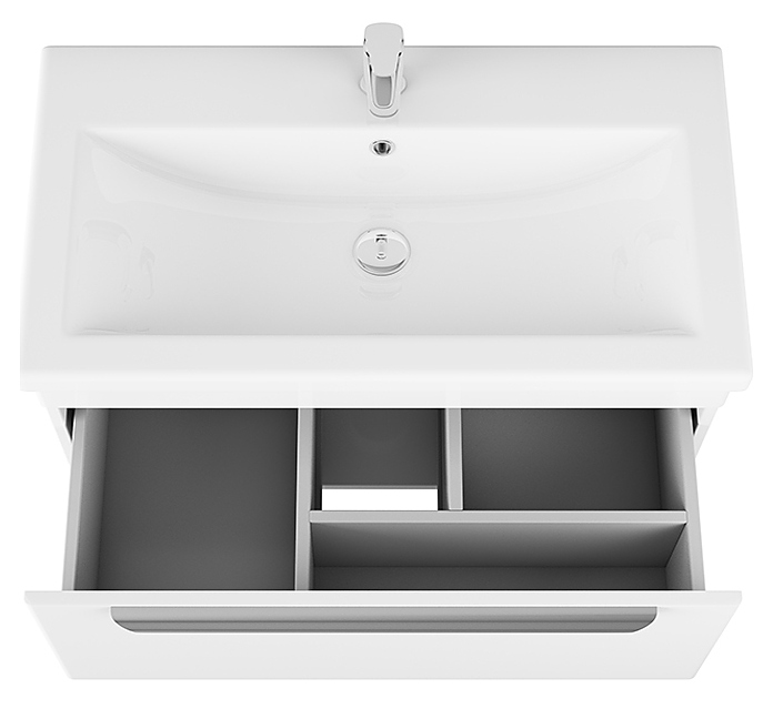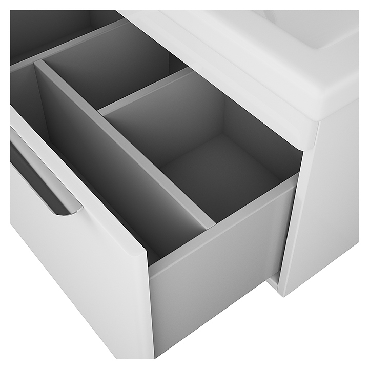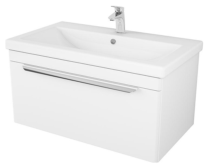 Тумба подвесная под раковину OWL Vind 80 OW23.05.00 выполнена в современном стиле и за счет своего элегантного дизайна легко впишется в любой интерьер. Модель оснащена ящиком полного выдвижения с системой разделения пространства, где удобно хранить необходимые в ванной комнате личные принадлежности, аксессуары и элементы декора. Благодаря подвесной конструкции изделие не занимает много места и обеспечивает легкую уборку в ванной комнате. Корпус тумбы выполнен из ЛДСП, фасады - из высококачественной МДФ белого цвета, ручки - хромированная латунь. Тумба приобретается только в комплекте с раковиной Cersanit COMO 80 UM-COM80/1. Тумба является частью гарнитура для ванной комнаты Vind 80. Особенности:
