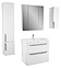 Гарнитур OWL Vind stor 70 выполнен в современном стиле. Комплект состоит из тумбы под раковину Vind stor 70 OW23.14.00, раковины Cersanit COMO 70 UM-COM70/1, зеркальный шкаф Vind 70 OW23.40.00, полупенала Vind 30 OW23.08.00, пенала Vind 30 OW23.06.00 и комплект опор OW99.00.01. Тумба оснащена ящиком полного выдвижения с системой разделения пространства, раковина имеет слив-перелив и отверстие для смесителя по центру, пенал - распашные фасад-дверцы со стеклянными полками внутри. Благодаря подвесной конструкции изделие не занимает много места и обеспечивает легкую уборку в ванной комнате. Корпус мебели выполнен из ЛДСП, фасады - высококачественной МДФ белого цвета, раковина - из санфарфора, который обладает повышенной прочностью и устойчивостью к негативным внешним факторам, а так же способен долгое время сохранять идеальную белизну. Особенности: