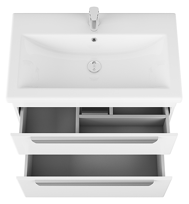 Гарнитур OWL Vind stor 80 выполнен в современном стиле. Комплект состоит из тумбы под раковину Vind stor 80 OW23.15.00, раковины Cersanit COMO 80 UM-COM80/1, зеркальный шкаф Vind 80 OW23.50.00, полупенала Vind 30 OW23.08.00, пенала Vind 30 OW23.06.00 и комплект опор OW99.00.01. Тумба оснащена ящиком полного выдвижения с системой разделения пространства, раковина имеет слив-перелив и отверстие для смесителя по центру, пенал - распашные фасад-дверцы со стеклянными полками внутри. Благодаря подвесной конструкции изделие не занимает много места и обеспечивает легкую уборку в ванной комнате. Корпус мебели выполнен из ЛДСП, фасады - высококачественной МДФ белого цвета, раковина - из санфарфора, который обладает повышенной прочностью и устойчивостью к негативным внешним факторам, а так же способен долгое время сохранять идеальную белизну. Особенности: