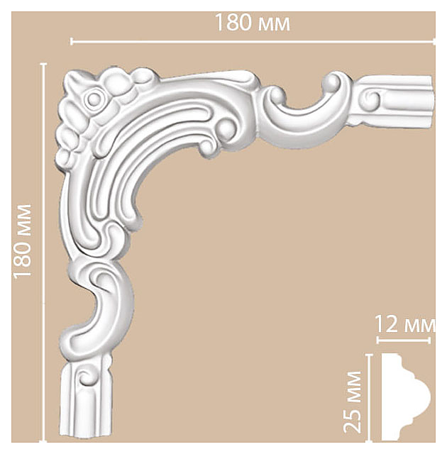 Угол к плинтусу потолочному Decomaster 97012-5 (180x180x12 мм)