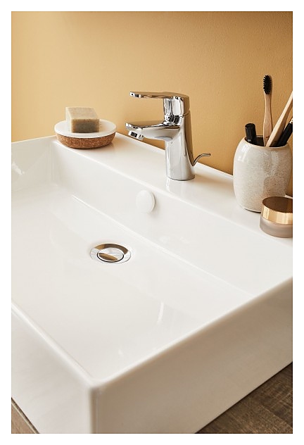 Смеситель для раковины Jacob Delafon AIME E29869-BL предназначен для использования в ванных помещениях для подачи горячей и холодной воды. Модель имеет конический корпус, обеспечивающий надежную прочность, слегка приподнятую ручку для легкой регулировки и закругленные углы соединений, а также оснащена керамическим дисковым картриджем, обеспечивающим плавный ход рычага смесителя, контроль и точность при выборе напора и температуры воды. В комплект поставки входит подводка и донный клапан. Особенности: