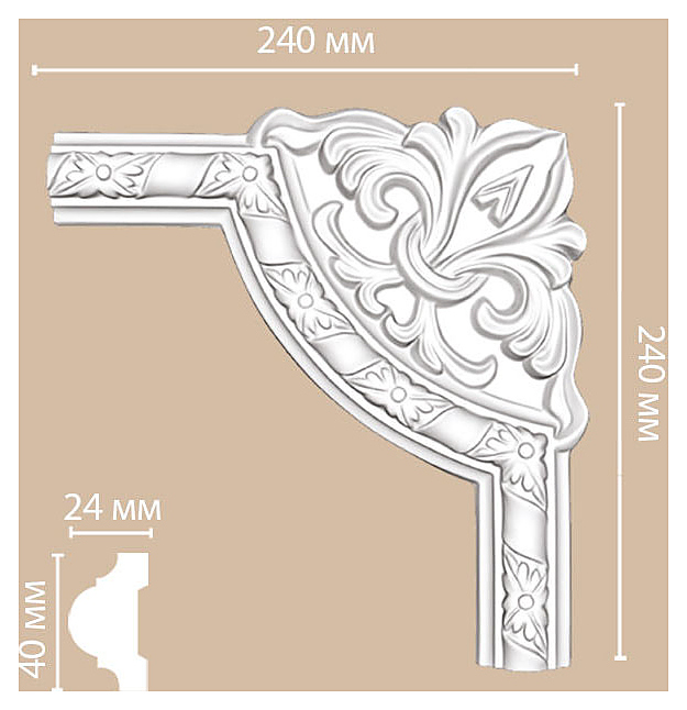 Угол Decomaster DP 8051 C предназначен для декоративного оформления помещений в заведениях общественного питания и торговли, офисах, частных домах и квартирах. Изделие выполнено из полиуретана, отличающегося эластичностью, высокой прочностью и сопротивлением к многократным деформациям, а также стойкостью к микроорганизмам и плесени. Цена указана за 1 шт. Дополнительные характеристики: