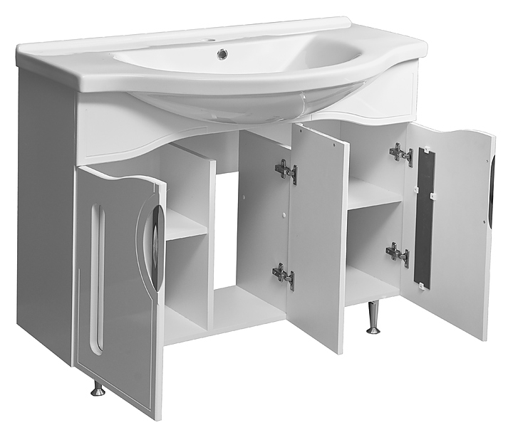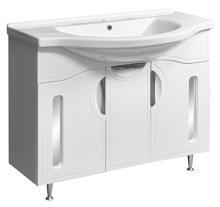Тумба Stella Polar Сильва 100 SP-00000204 выполнена в современном, лаконичном стиле и отлично дополнит интерьер любой ванной комнаты. Модель оснащена 3 распашными фасад-дверцами с полкой внутри, где удобно разместить все необходимые личные принадлежности и элементы декора, раковина имеет слив-перелив и отверстие для смесителя по центру. Напольная конструкция обеспечивает легкий монтаж и не требует специального ремонта в помещении. Изделие выполнено из влагостойкого ЛДСП премиум-класса "Lamarty", что обеспечивает превосходный внешний вид и значительно увеличивает срок эксплуатации. Тумба приобретается только в комплекте с раковиной Эльбрус 100 1WH110255. Тумба с раковиной может использоваться в составе гарнитура Сильва 100. Особенности: