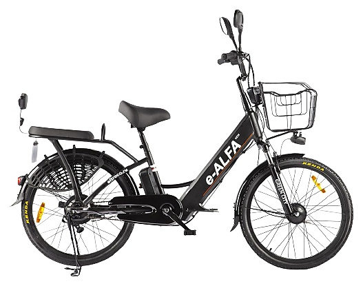 Велогибрид Green City e-ALFA new используется для комфортного передвижения по любым дорожным покрытиям, от асфальтированной дороги до бездорожья. Модель оснащена тормозами барабанного типа и передней корзиной увеличенного размера. Рама выполнена из стали, полноразмерные крылья - из металла. Особенности: