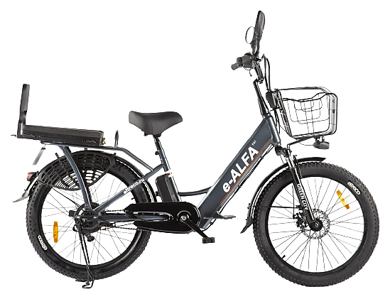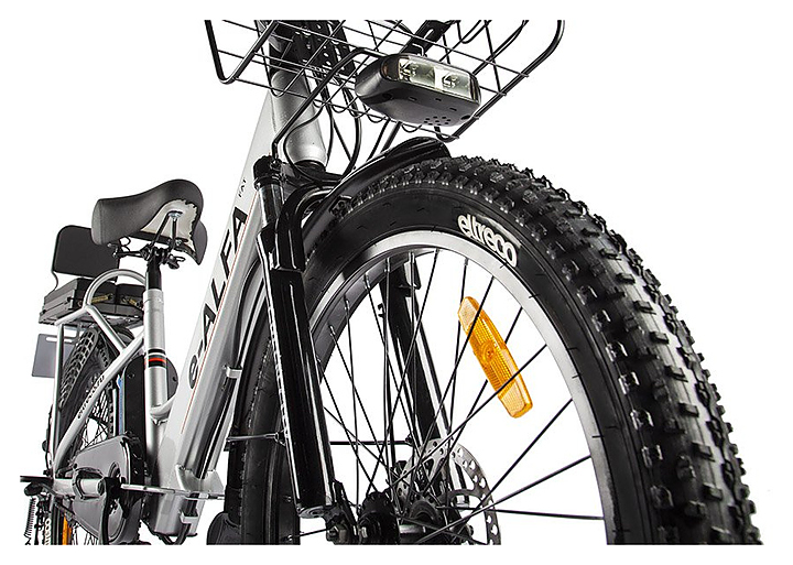 Велогибрид Green city City e-ALFA Fat используется для комфортного передвижения по любым дорожным покрытиям, от асфальтированной дороги до бездорожья. Модель оснащена широкими колесами и резиной с внедорожным протектором. Рама выполнена из стали, полноразмерные крылья - из металла. Особенности: