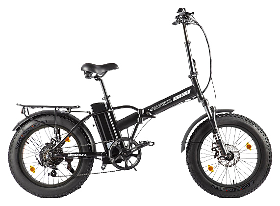 Велогибрид VOLTECO CYBER используется для комфортного передвижения по городу, а также для доставки заказов клиентам. Модель оснащена дисковыми тормозами, задним багажником и складной изогнутой рамой и рулевой колонкой. Рама выполнена из алюминия, седло - из эко-кожи, широкие полноразмерные крылья - из металла. Особенности: