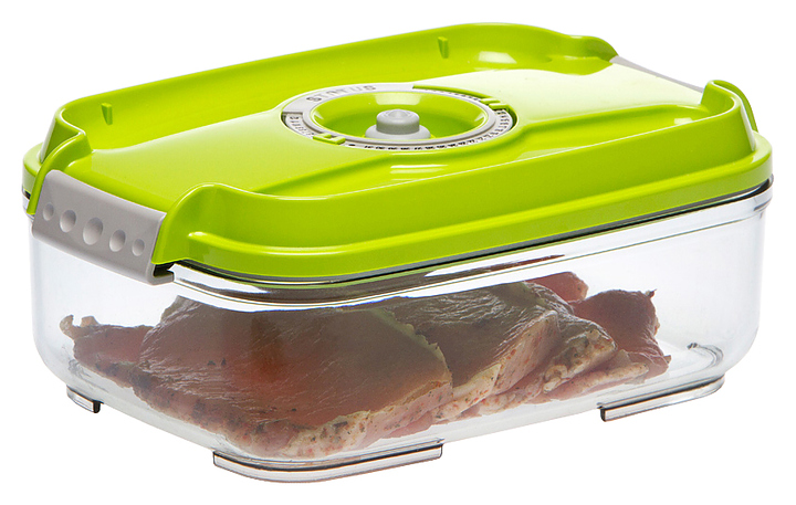Вакуумный контейнер Status VAC-REC-14 используется совместно с вакуумными упаковщиками, поддерживающими подключение вакуумного шланга, или с ручным насосом для упаковки продуктов в частных домах и квартирах для последующего их хранения. Модель имеет прямоугольную форму, оснащена силиконовым уплотнительным кольцом и индикатором даты (месяц и число) на крышке. Изделие выполнено из тритана, не содержащего бисфенол А, крышка - из ABS-пластика. Особенности: