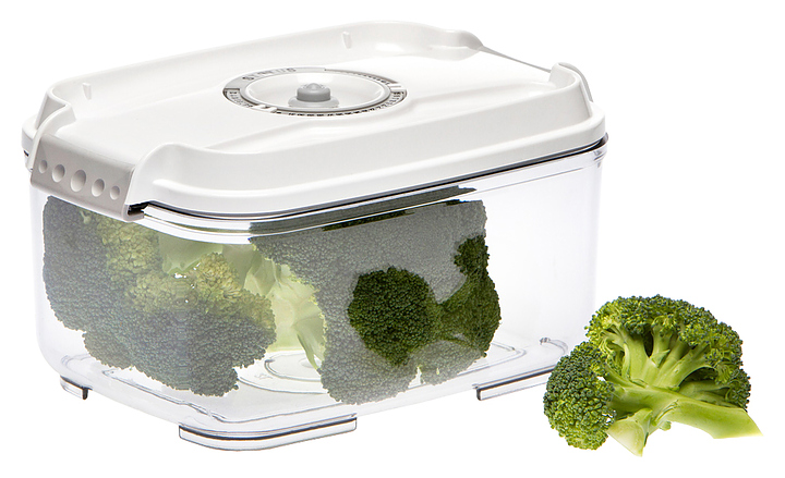 Вакуумный контейнер Status VAC-REC-20 используется совместно с вакуумными упаковщиками, поддерживающими подключение вакуумного шланга, или с ручным насосом для упаковки продуктов в частных домах и квартирах для последующего их хранения. Модель имеет прямоугольную форму, оснащена силиконовым уплотнительным кольцом и индикатором даты (месяц и число) на крышке. Изделие выполнено из тритана, не содержащего бисфенол А, крышка - из ABS-пластика. Особенности: