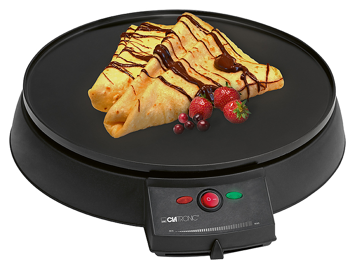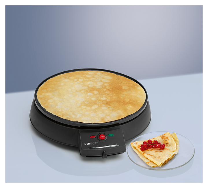 Блинница Clatronic CM 3372 предназначена для выпечки круглых блинов в частных домах и квартирах. Модель оснащена теплоизолированным основанием и ручками. Корпус выполнен из пластика, рабочая поверхность - с антипригарным покрытием. В комплект поставки входит распределитель для теста. Особенности: