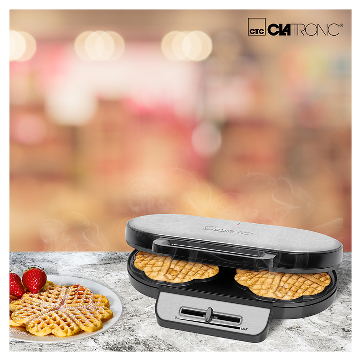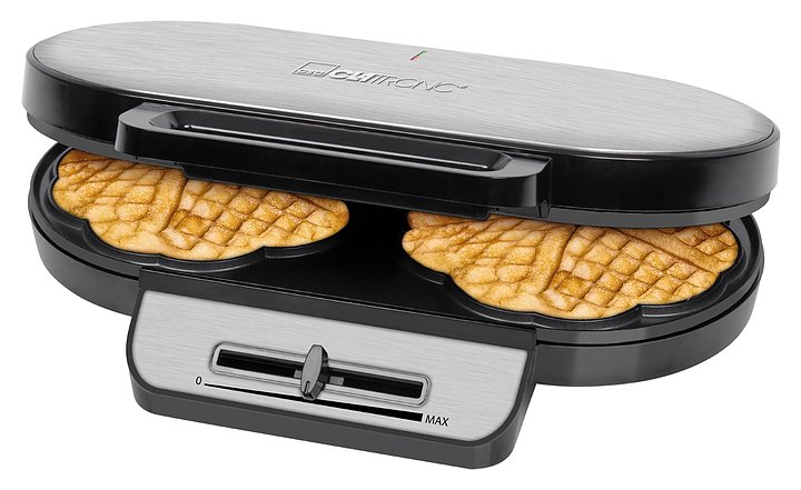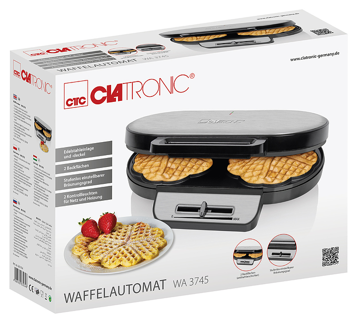 Вафельница Clatronic WA 3745 используется в частных домах и квартирах для выпекания венских вафель в форме сердца. Модель оснащена световыми индикаторами питания и нагрева и теплоизолированной ручкой. Корпус выполнен из пластика со вставкой из нержавеющей стали, рабочая поверхность - с антипригарным покрытием. Особенности: