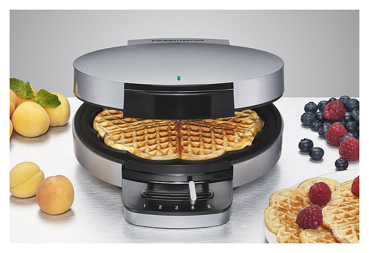 Вафельница Rommelsbacher WA 750 используется в частных домах и квартирах для выпекания венских вафель в форме сердечек. Модель оснащена бесступенчатой регулировкой температуры, контрольными лампами питания и нагрева и теплоизолированной ручкой. Корпус выполнен из пластика, жарочные пластины имеют двухслойное антипригарное покрытие Xylan® Plus. Особенности: