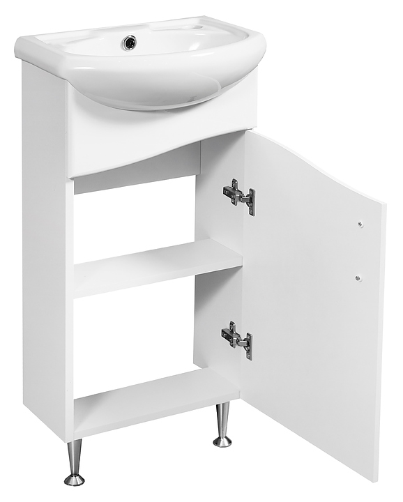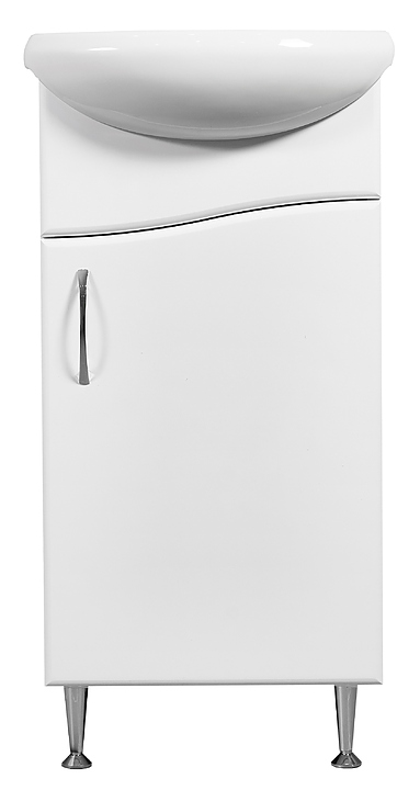 Тумба Stella Polar Волна 40 SP-00000230 выполнена в современном, лаконичном стиле и отлично дополнит интерьер любой ванной комнаты. Модель оснащена распашной фасад-дверцей с полкой внутри, где удобно разместить все необходимые личные принадлежности и элементы декора, раковина имеет слив-перелив и отверстие для смесителя по центру. Напольная конструкция обеспечивает легкий монтаж и не требует специального ремонта в помещении. Изделие выполнено из влагостойкого ЛДСП премиум-класса "Lamarty", что обеспечивает превосходный внешний вид и значительно увеличивает срок эксплуатации. Тумба приобретается только в комплекте с раковиной Santek Азов 40 1WH110254. Особенности: