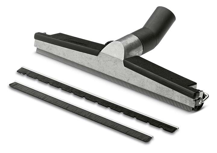 Универсальная насадка Karcher 6.903-018 предназначена для использования с пылесосами серии NT для влажной и сухой уборки. Модель оснащена регулируемыми по высоте боковыми колесиками, щеточными и маслостойкими резиновыми полосками. Изделие выполнено из алюминия. Характеристики: