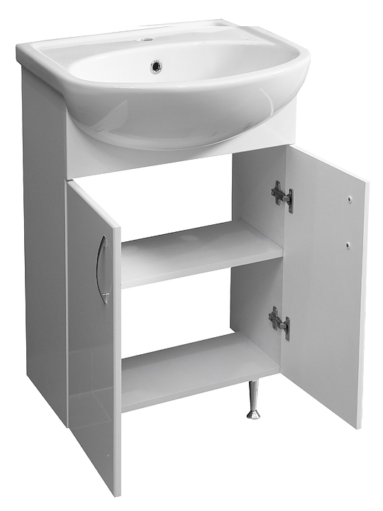 Тумба Stella Polar Концепт 55 ЭКО SP-00000047 выполнена в современном, лаконичном стиле и отлично дополнит интерьер любой ванной комнаты. Модель оснащена распашными фасад-дверцами с полкой внутри, где удобно разместить все необходимые личные принадлежности и элементы декора, раковина имеет слив-перелив и отверстие для смесителя по центру. Напольная конструкция обеспечивает легкий монтаж и не требует специального ремонта в помещении. Изделие выполнено из влагостойкого ЛДСП премиум-класса "Lamarty", что обеспечивает превосходный внешний вид и значительно увеличивает срок эксплуатации. Тумба приобретается только в комплекте с раковиной Rosa Уют 55 SD-00000065. Особенности: