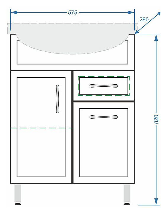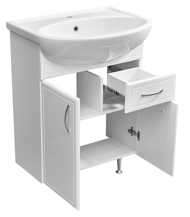 Тумба Stella Polar Концепт 60 SP-00000053 выполнена в современном, лаконичном стиле и отлично дополнит интерьер любой ванной комнаты. Модель оснащена распашными фасад-дверцами с полкой внутри и небольшим выдвижным ящиком, где удобно разместить все необходимые личные принадлежности и элементы декора, раковина имеет слив-перелив и отверстие для смесителя по центру. Напольная конструкция обеспечивает легкий монтаж и не требует специального ремонта в помещении. Изделие выполнено из влагостойкого ЛДСП премиум-класса "Lamarty", что обеспечивает превосходный внешний вид и значительно увеличивает срок эксплуатации. Тумба приобретается только в комплекте с раковиной Cersanit Эрика 60 UM-ERI60/1. Особенности:
