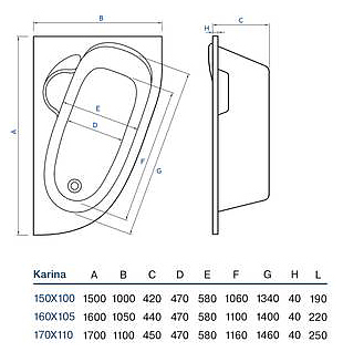 Ванна Koller Pool Karina L 170х110 см выполнена в современном стиле и легко впишется в любой интерьер. Модель оснащена угловым местом для сидения и изгибом под полочку для ванных принадлежностей, а диагональное расположение обеспечивает большой простор для телодвижений. Благодаря угловой конструкции можно сэкономить пространство комнаты и заполнить свободный угол. Изделие выполнено из качественного акрила, устойчивого к механическим повреждениям, обладающего высокой теплоемкостью, небольшим весом и повышенной шумоизоляцией. Панель и каркас в комплект поставки не входят и приобретаются отдельно. Особенности:
