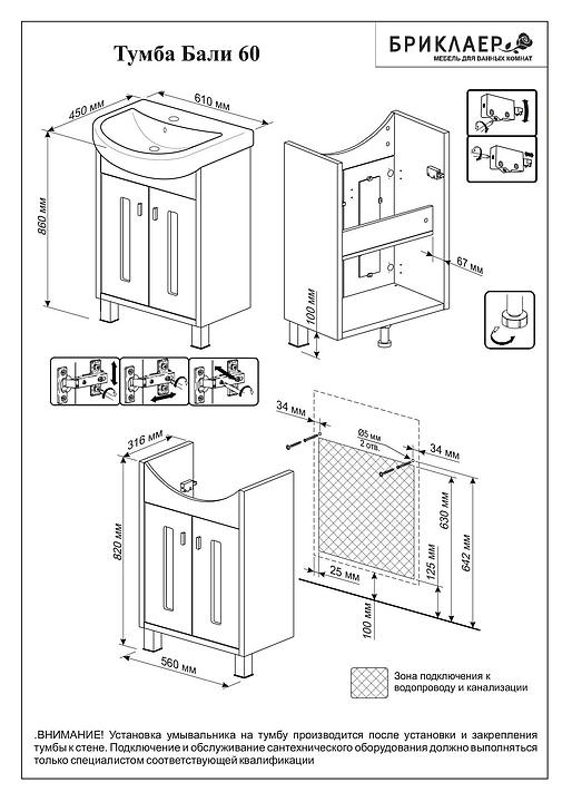 Тумба БРИКЛАЕР Бали 60 выполнена в стиле модерн и станет украшением любой ванной комнаты. Модель оснащена 2 распашными дверями и внутренней полкой. Корпус мебели выполнен из влагостойкой ЛДСП, фасад - из МДФ с покрытием краской, благодаря чему изделие сохраняет цвет и форму даже в условиях агрессивной влажной среды. Может использоваться в комплекте с раковиной Балтика 60. Особенности: