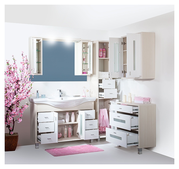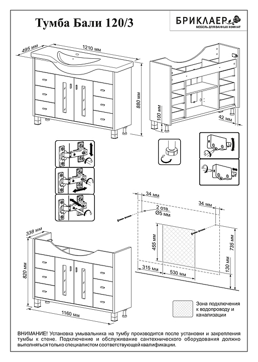 Тумба БРИКЛАЕР Бали 120 выполнена в стиле модерн и станет украшением любой ванной комнаты. Модель оснащена 6 выдвижными ящиками, расположенными слева и справа, 2 распашными дверями и просторной внутренней полкой для хранения ванных принадлежностей. Корпус мебели выполнен из влагостойкой ЛДСП, фасад - из МДФ с покрытием краской, благодаря чему изделие сохраняет цвет и форму даже в условиях агрессивной влажной среды. Может использоваться в комплекте с раковиной Классик 120. Особенности: