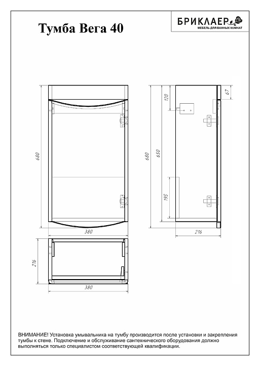 Тумба БРИКЛАЕР Вега 40 выполнена в современном стиле и станет украшением любой ванной комнаты. Благодаря подвесной конструкции изделие не занимает много места, позволяет экономить пространство и облегчает уборку. Модель оснащена распашной дверью и внутренней полкой для хранения ванных принадлежностей. Фасад мебели выполнен из МДФ, которая не восприимчива к влаге, на длительный срок сохраняет форму и цвет изделия в первозданном виде. Может использоваться в комплекте с раковиной Комо 40. Особенности: